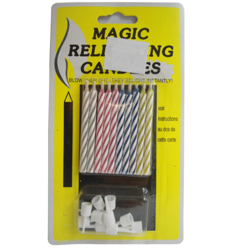 After lighting candles, allow them to burn about 60 seconds before blowing them out. After the flame is blown out, the candle will relight automatically. This may be repeated over and over again.